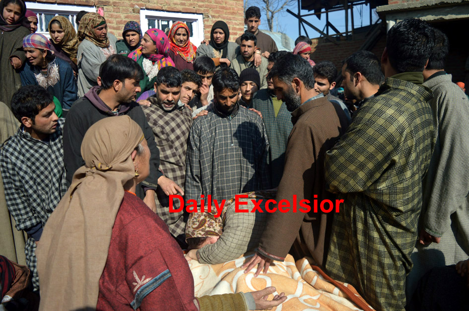 KULGAM: Relatives wailing over the killing of a policeman Zahoor...