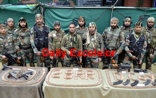 Army jawans in action at Handwara on Friday. -Excelsior/Aabid Nabi