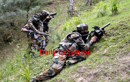 Army jawan in action during Encounter at Waderbala forest in Handwara...