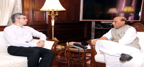 Chief Minister Omar Abdullah calling on Union Home Minister Rajnath Singh...