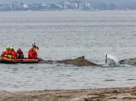 Rescuers try to refloat stranded humpback whale in Germany’s Baltic Sea