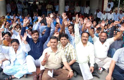 Para Medical employees and clerical staff raising slogans during protest at...