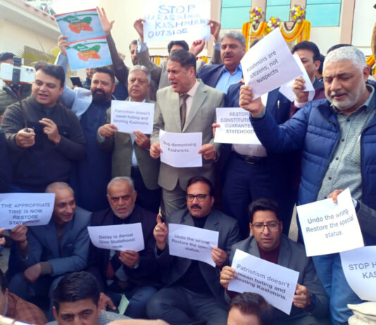 Demanding Restoration Of Statehood, NC Legislators Protest Outside J&K Assembly