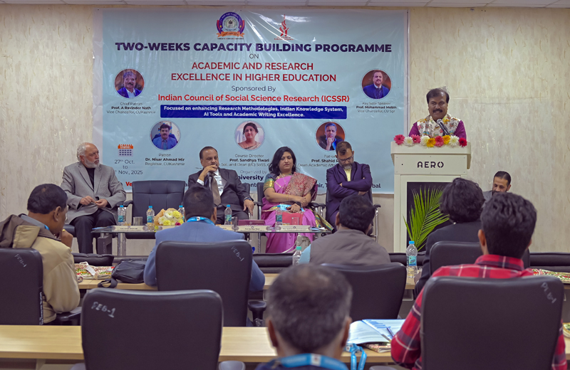 GANDERBAL, Oct 27: A two-week Capacity Building Programme (CBP) on “Academic and Research Excellence in Higher Education”, organised by the Central University of Kashmir (CUK) and sponsored by the Indian Council of Social Science Research (ICSSR) was commenced here today.