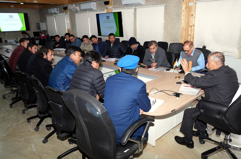 CEC/Chairman, Dr Mohd Jaffer Akhoon during their meeting with LG Ladakh BD Mishra in Leh on Saturday.