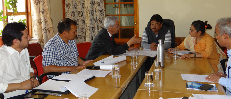 LEH, July 18: To ensure earliest functioning of University of Ladakh in Leh, the CEC LAHDC, Leh, Gyal P Wanggyal convened a meeting of Vice Chancellor, Ladakh University, C Phuntsog, DC Leh Avny Lavasa, Joint Director Education Ladakh, Tashi Dolma; Registrar, Ladakh University, Imteeaz Kacho; Controller of Examination, Prof Deskyong Namgyal; SE PWD Leh, P K Sharma, concerned engineers and officers at Council Secretariat, here this afternoon.