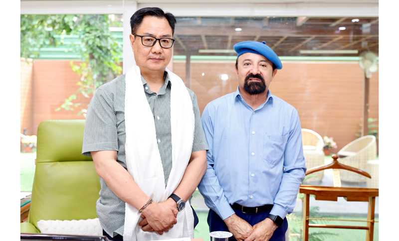CEC Dr Mohammad Jaffer Akhoon with Union Minister Kiren Rijiju in Delhi on Thursday.