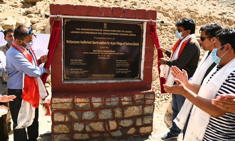 Khan laid the foundation stone of multipurpose auditorium/sports stadium at Darchiks village which is being constructed at an estimated cost of Rs 200.139 lacs by the R&B Department Kargil under the District Plan.