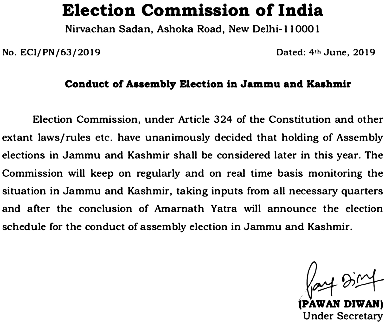 “The Commission will keep monitoring the situation in the State regularly based on inputs from all necessary quarters and announce the election schedule only after the conclusion of Amarnath yatra”, said the poll panel in an official communiqué.