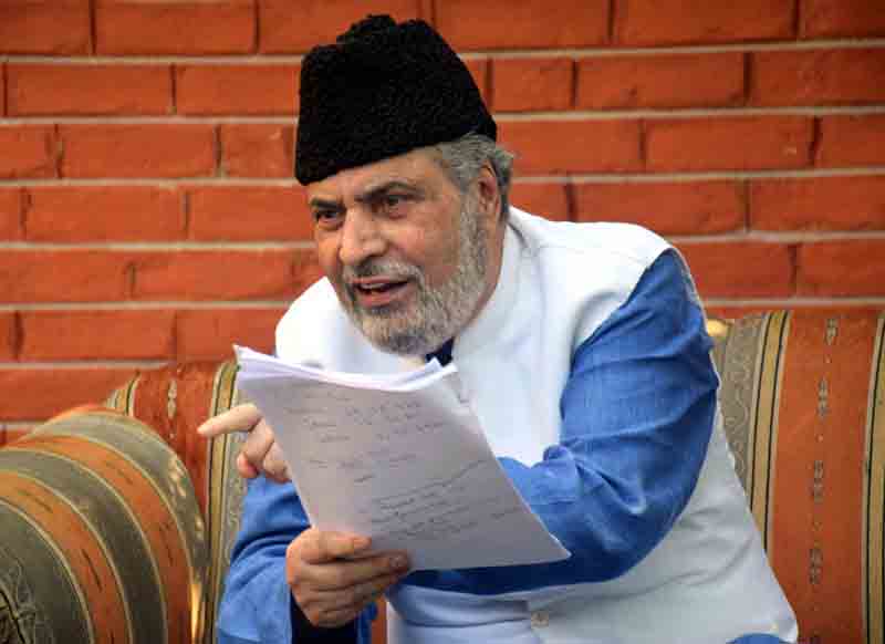 Former Member Parliament and Former Deputy Chief Minister Muzaffar Hussain Baigh during a press conference in Srinagar on Friday. -Excelsior/Shakeel