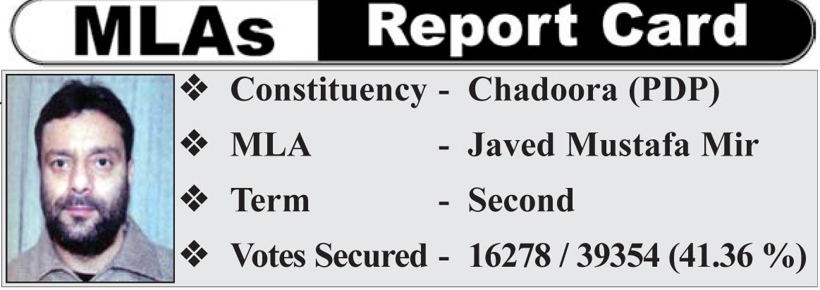 The constituency is represented second time by Javed Mustafa Mir of PDP who defeated National Conference candidate Ali Mohammad Dar by a margin of around 3000 votes in 2008 Assembly elections. Mir polled 16278 votes and Dar 13338.