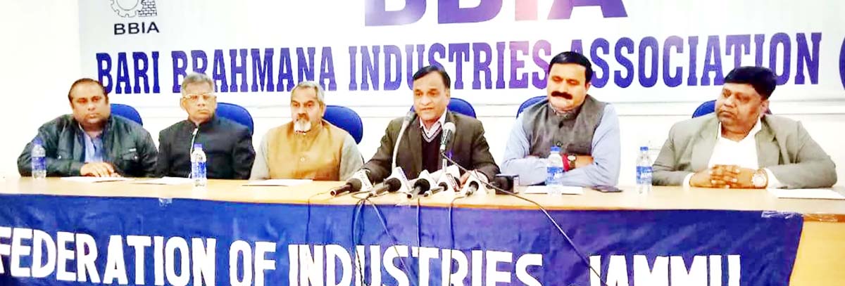 Chairman FoIJ, Lalit Mahajan and other office bearers at press conference at Bari Brahmana on Monday.
