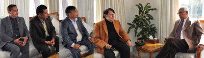 Mr. Bhagat apprised the Governor about demands relating to transferring funds to Panchayats for treatment of Baglihar Dam’s Catchment area; free electricity for the areas close to Baglihar Dam and Chenab river; concessional electricity rates for BPL ration card holders; clearing pending liabilities on account of MGNREGA; same compensation rates for lands acquired under PMGSY, early start of pending work on Jullah bridge over Chenab river at Ramban; regularization of daily wagers working in different govt. departments; special survey for inclusion of new cases relating to old age, widow and handicapped etc.