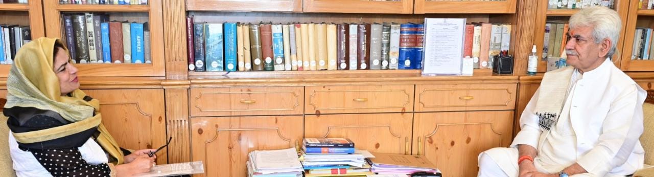 Srinagar/Jammu, May 12: Safina Baig, DDC Chairperson, Baramulla called on Lieutenant Governor Manoj Sinha at Raj Bhawan, today.