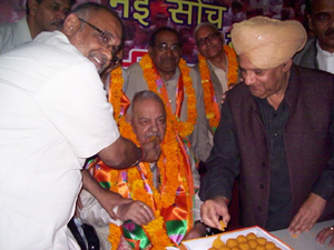 JAMMU, Nov 8: Former Union Minister of State and MLA, Jammu West Prof Chaman Lal Gupta, who was expelled from the Party in 2010 for alleged cross voting in MLC polls, today rejoined the BJP at a function here today. Mr Gupta was welcomed into party fold by BJP Member of Parliament (MP) and in-charge J&K Affairs Avinash Rai Khanna and other senior Party leaders including Leader of Legislative Party Ashok Khajuria, ex president Shamsher Singh Manhas, national Incharge of Party Cells and Morchas Mohinder Pandey and its State vice president Ramesh Arora at party headquarters this afternoon.