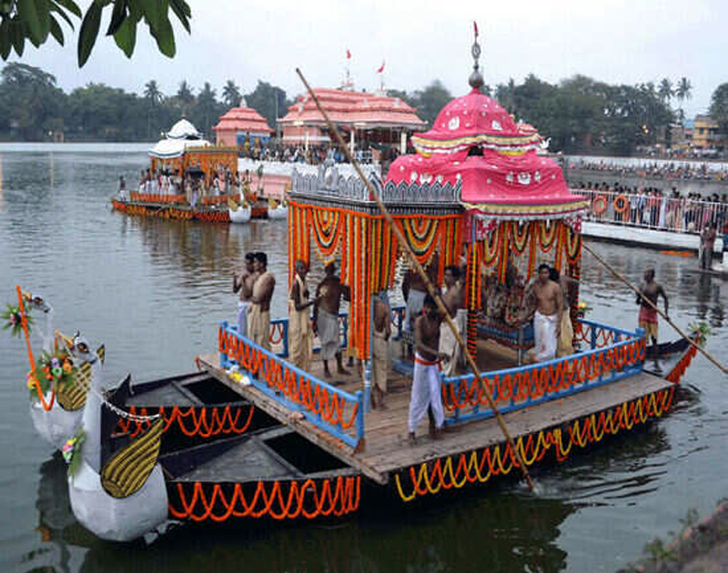 Upon arrival at Narendra Tank, the deities were given a ceremonial bath with sandalwood paste and aromatic water to provide a cooling effect. They were then placed aboard two large swan-shaped boats, named Nanda and Bhadra, and enjoyed a boat ride lasting until late evening. Following the ritual, the deities returned to the temple with the same grandeur and ceremony as their departure.