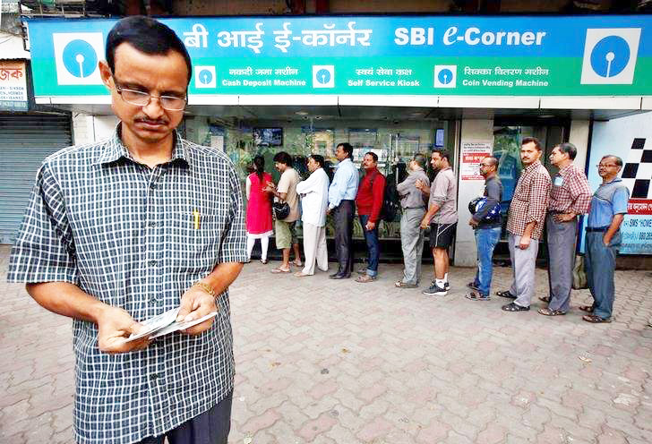 People waited for hours to get the cash needed to meet their daily expenses as most prevalent higher denomination currency notes of Rs 500 and Rs 1000 were declared invalid.