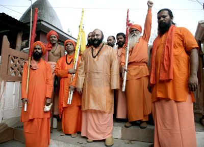 Led by its sole custodian Mahant Deependera Giri, who is also the president of True Trust formed by him in 2004, the Sadhus and devotees accompanying the Chhari Mubarak earlier performed Puja at Dashnami Akhara in a traditional way. As the holy mace left the Dashnami Akhara, the chanting of Bum Bum Bholey rent the air.