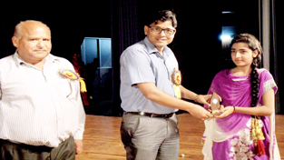 Chief guest felicitating a winner during Annual Day celebration at KV Damana in Jammu on Tuesday.