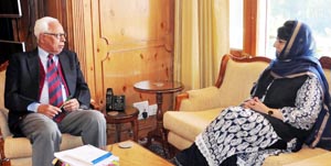 SRINAGAR: Ms Mehbooba Mufti, Chief Minister, met Governor N. N. Vohra at the Raj Bhavan here today afternoon.