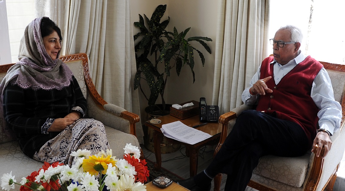 JAMMU: Chief Minister Mehbooba Mufti met Governor N. N. Vohra at the Raj Bhavan here today.