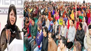 Chief Minister Mehbooba Mufti addressing a public gathering in Jammu on Friday.
