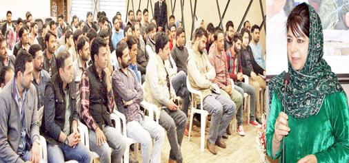 Chief Minister Mehbooba Mufti addressing delegations of youth in Srinagar on Friday. By Daily Excelsior - April 7, 2018 Share FacebookTwitterWhatsAppPinterestLinkedinCopy URLTelegramEmailTumblrReddItPrintKoo Chief Minister Mehbooba Mufti addressing delegations of youth in Srinagar on Friday. Follow our WhatsApp channel