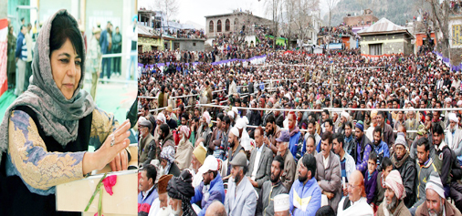 Chief Minister Mehbooba Mufti addressing public meeting at Kotranka in Rajouri district on Tuesday.