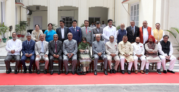 Chief Minister Mehbooba Mufti along with new Council of Ministers and Governor N N Vohra after swearing-in ceremony at Raj Bhavan, Jammu on Monday. Related stories on page Nos 3 & 5. -Excelsior/ Rakesh