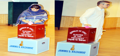 Chief Minister Mehbooba Mufti and Opposition leader Omar Abdullah casting their votes for the Presidential election in Srinagar on Monday.