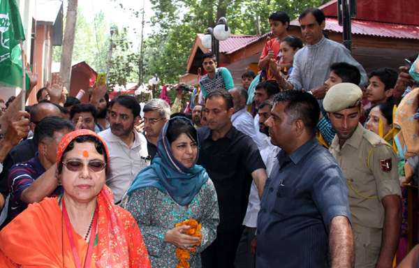 Chief Minister Mehbooba Mufti at Kheer Bhawani temple in Ganderbal on Sunday. By Daily Excelsior - June 13, 2016 Share FacebookTwitterWhatsAppPinterestLinkedinCopy URLTelegramEmailTumblrReddItPrintKoo Chief Minister Mehbooba Mufti at Kheer Bhawani temple in Ganderbal on Sunday. Chief Minister Mehbooba Mufti at Kheer Bhawani temple in Ganderbal on Sunday. Follow our WhatsApp channel