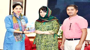 Chief Minister Mehbooba Mufti being presented book on women cricket by Roopali Slathia in Jammu. By Daily Excelsior - March 8, 2018 Share FacebookTwitterWhatsAppPinterestLinkedinCopy URLTelegramEmailTumblrReddItPrintKoo Chief Minister Mehbooba Mufti being presented book on women cricket by Roopali Slathia in Jammu. Chief Minister Mehbooba Mufti being presented book on women cricket by Roopali Slathia in Jammu. Follow our WhatsApp channel