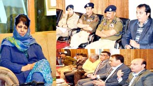 Chief Minister Mehbooba Mufti chairing a meeting in Srinagar on Monday. By Daily Excelsior - April 4, 2017 Share FacebookTwitterWhatsAppPinterestLinkedinCopy URLTelegramEmailTumblrReddItPrintKoo Chief Minister Mehbooba Mufti chairing a meeting in Srinagar on Monday. Chief Minister Mehbooba Mufti chairing a meeting in Srinagar on Monday. Follow our WhatsApp channel