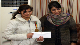 Chief Minister Mehbooba Mufti honouring Meenal Gupta with cash award. By Daily Excelsior - December 21, 2016 Share FacebookTwitterWhatsAppPinterestLinkedinCopy URLTelegramEmailTumblrReddItPrintKoo Chief Minister Mehbooba Mufti honouring Meenal Gupta with cash award. Chief Minister Mehbooba Mufti honouring Meenal Gupta with cash award. Follow our WhatsApp channel