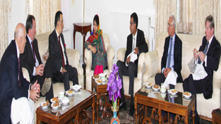 Chief Minister, Mehbooba Mufti interacting with Australian delegation at Srinagar on Sunday.