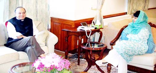 Chief Minister Mehbooba Mufti meeting Union Finance Minister Arun Jaitley in Srinagar on Thursday. (UNI) By Daily Excelsior - May 19, 2017 Share FacebookTwitterWhatsAppPinterestLinkedinCopy URLTelegramEmailTumblrReddItPrintKoo Chief Minister Mehbooba Mufti meeting Union Finance Minister Arun Jaitley in Srinagar on Thursday. (UNI) Chief Minister Mehbooba Mufti meeting Union Finance Minister Arun Jaitley in Srinagar on Thursday. (UNI) Follow our WhatsApp channel