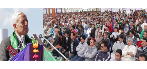 Chief Minister Mufti Mohammad Sayeed addressing people after inauguration of Bhaderwah Festival on Thursday. — Excelsior/Tilak