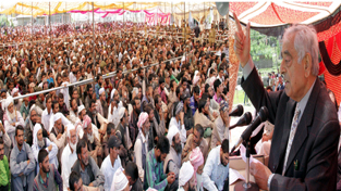 Chief Minister, Mufti Mohd Sayeed addressing a public gathering after launching Ans Canal Irrigation Project on Tuesday.