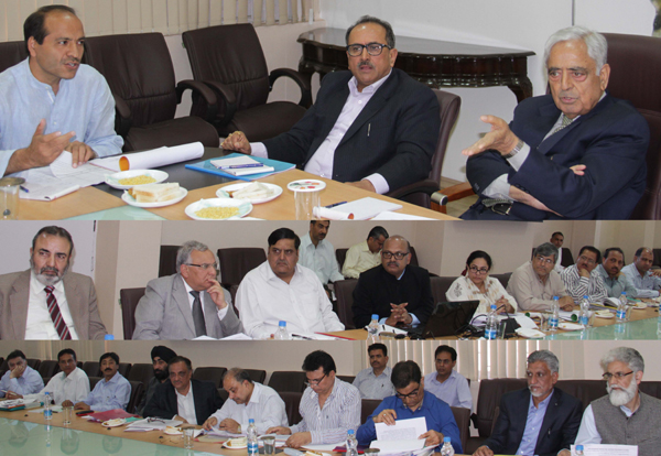 Chief Minister Mufti Mohd Sayeed alongwith Dy Chief Minister Dr Nirmal Singh chairing a high level meeting at Srinagar on Thursday.