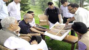 Chief Minister, Mufti Mohd Sayeed flanked by Minister for Education, Naeem Akhtar being explained about a project at Gulmarg on Saturday.