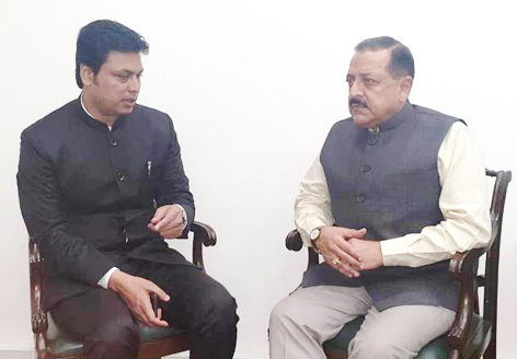 Chief Minister of Tripura, Biplab Kumar Deb calling on Union Minister Dr Jitendra Singh at New Delhi on Monday. By Daily Excelsior - November 26, 2019 Share FacebookTwitterWhatsAppPinterestLinkedinCopy URLTelegramEmailTumblrReddItPrintKoo Chief Minister of Tripura, Biplab Kumar Deb calling on Union Minister Dr Jitendra Singh at New Delhi on Monday. Chief Minister of Tripura, Biplab Kumar Deb calling on Union Minister Dr Jitendra Singh at New Delhi on Monday. Follow our WhatsApp channel