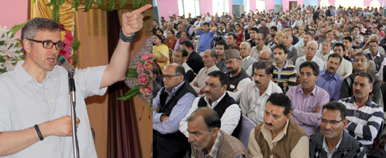 Chief Minister Omar Abdullah addressing an election meeting at Tumal Bohri on Sunday.