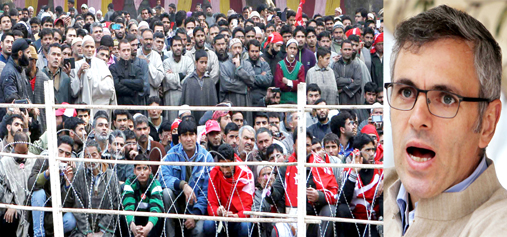 Chief Minister Omar Abdullah addressing an election rally at Doderhama in Ganderbal district, on Saturday. — Excelsior/Amin War
