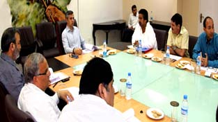 Chief Minister Omar Abdullah addressing a high level meeting in Srinagar on Tuesday.