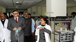 Chief Minister, Omar Abdullah inspecting functioning of Super Specialty Hospital at Reshamgarh on Tuesday.