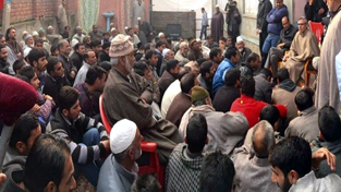 Chief Minister Omar Abdullah interacting with people during door-to-door campaign on Wednesday.