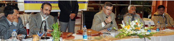 Chief Minister Omar Abdullah interacting with SKEWPY entrepreneurs at Jammu on Monday.