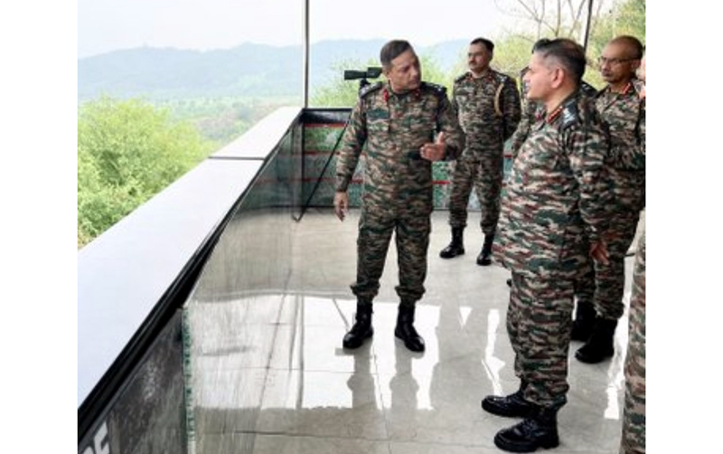 Chief of Army Staff Gen Upendra Dwivedi being briefed by the senior officers during his visit to the LoC in Poonch on Wednesday.
