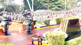 Chief of Staff Northern Command, Lt Gen HJS Sachdev and soldiers paying homage to martyrs of 1971 war at ‘Dhruva Memorial’ in Udhampur on Monday.