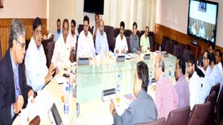 Chief Secretary B B Vyas chairing a meeting at Srinagar on Tuesday.